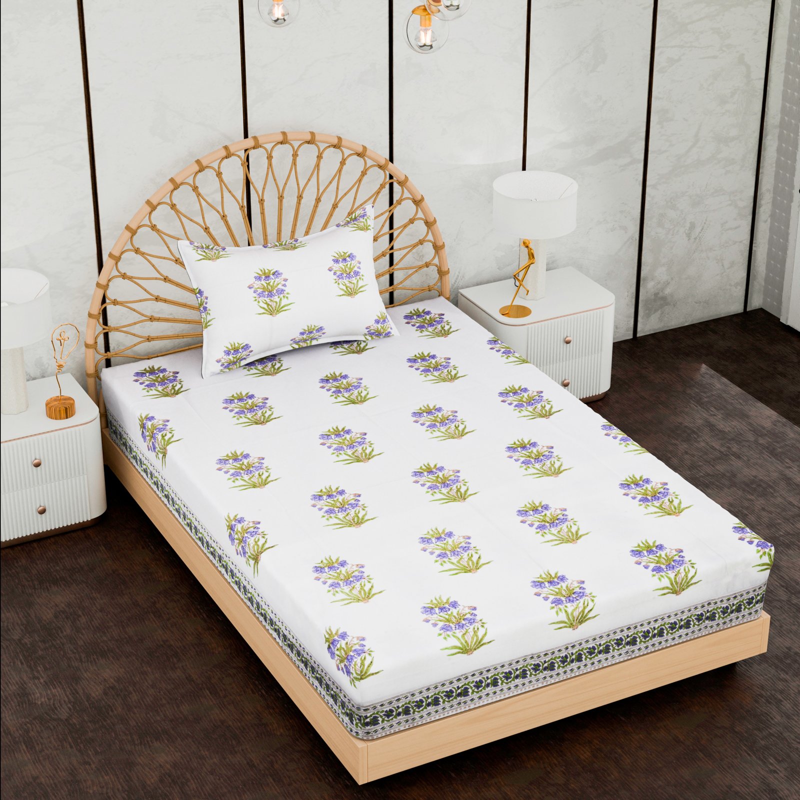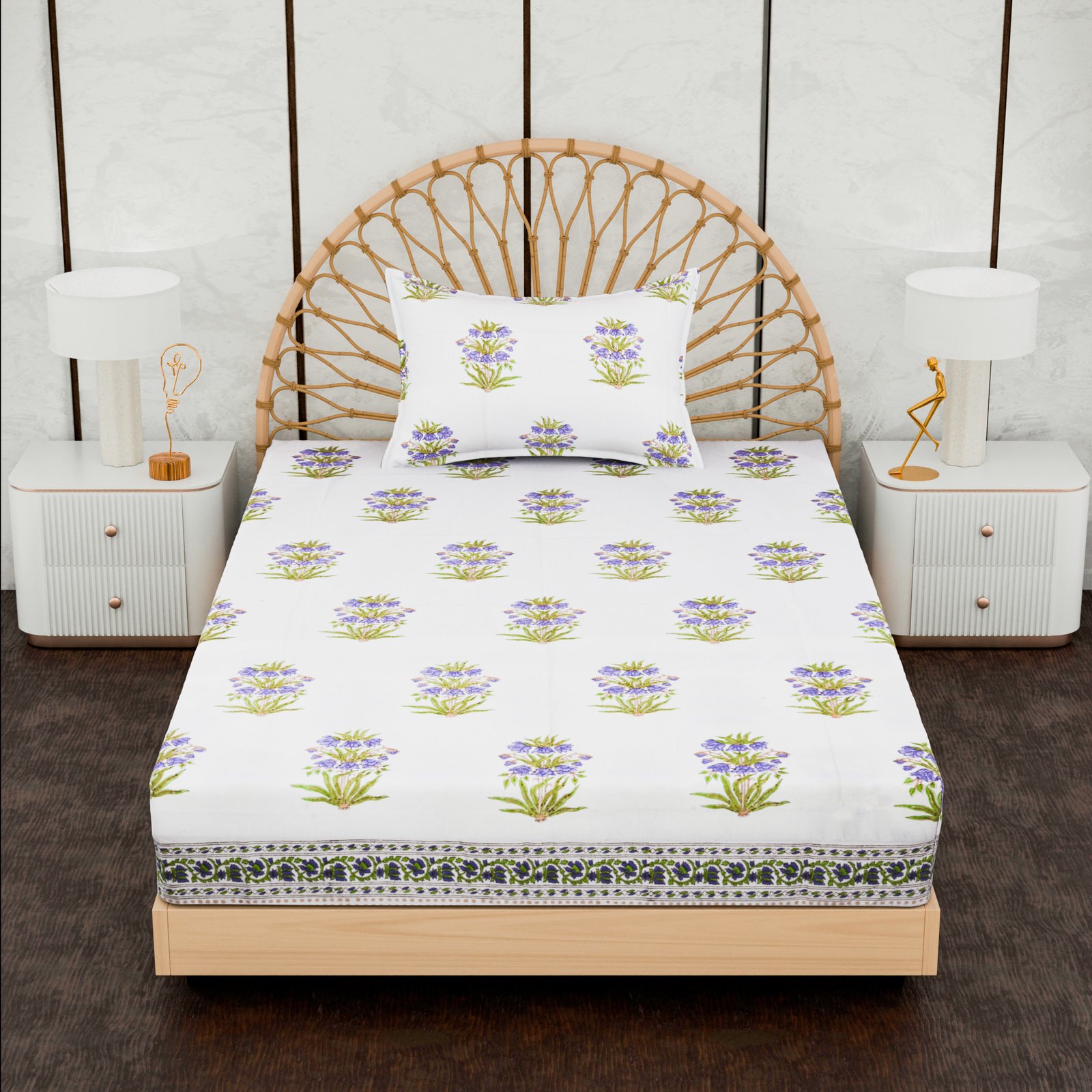 Premium Single Bed Sheet – Floral Hand Block Style Print